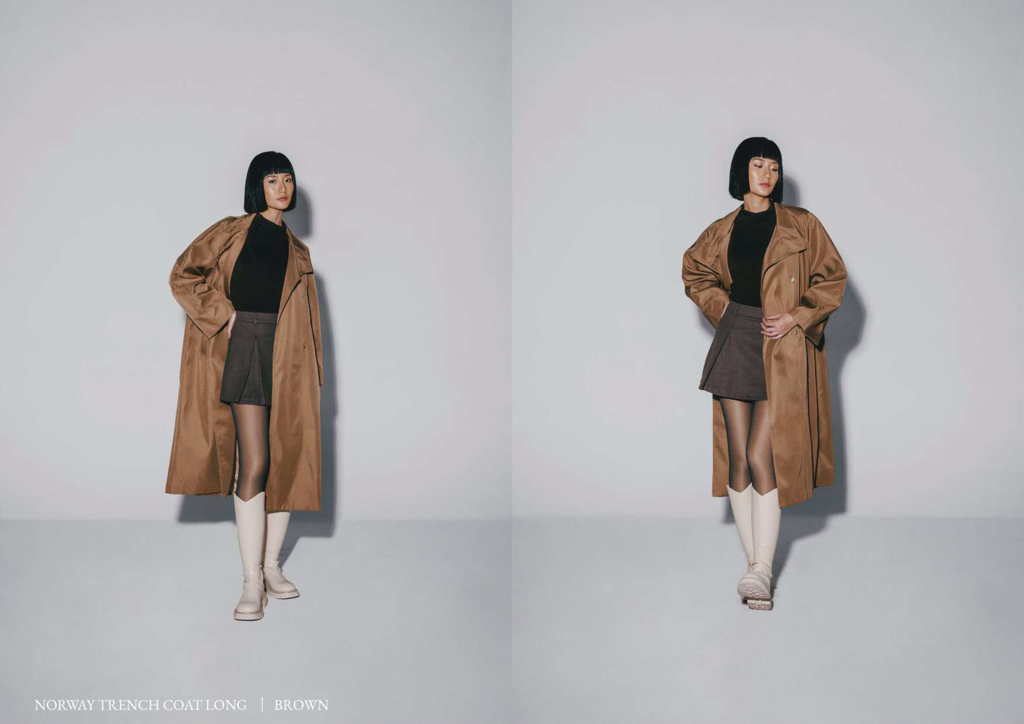 Norway Trench Coat (Long) Colors : Khaki - Grey - Black Bust : 65cm (130cm) Length : 117cm