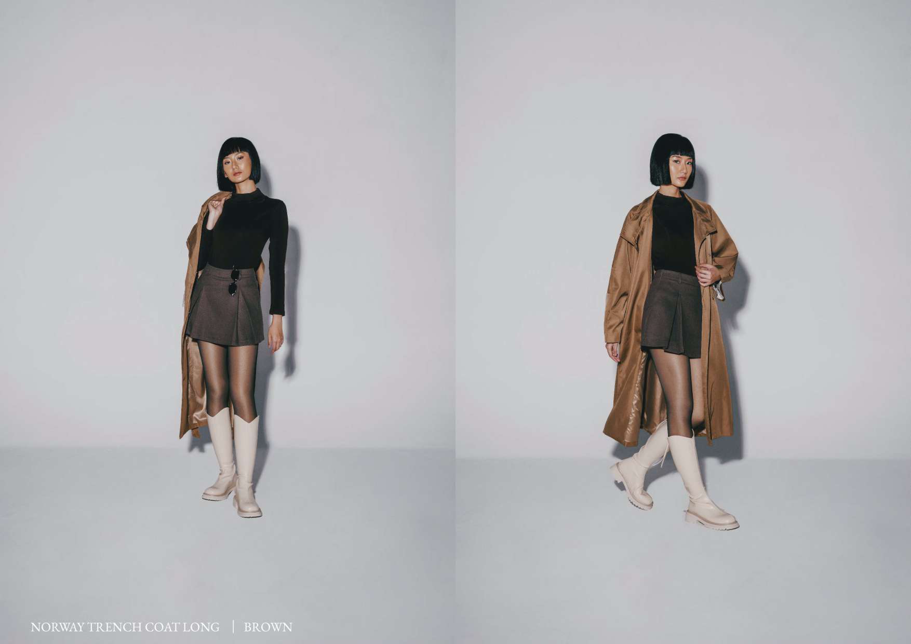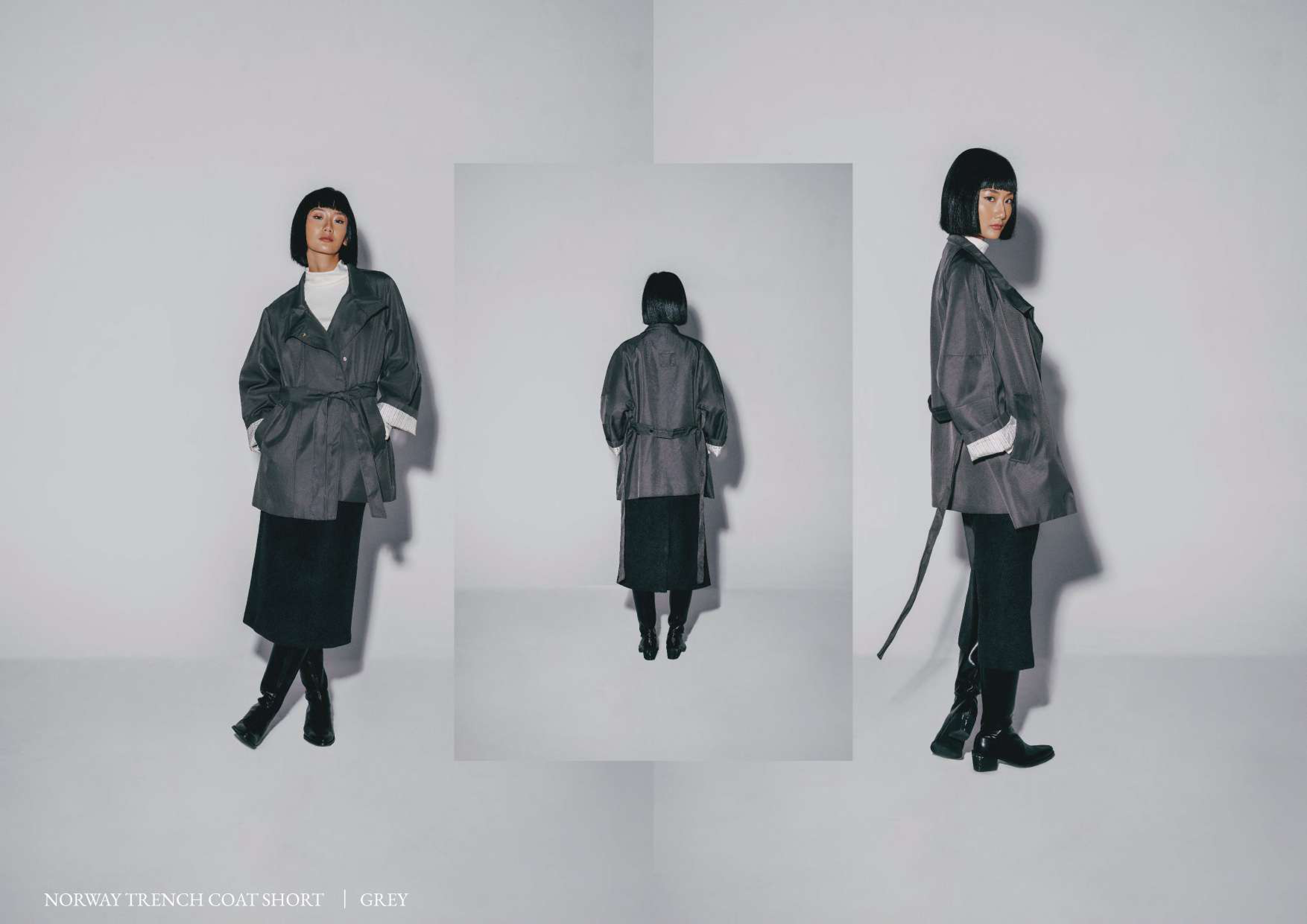 Norway Trench Coat (Short) Colors : Khaki - Grey - Black Bust : 65cm (130cm) Length : 76cm