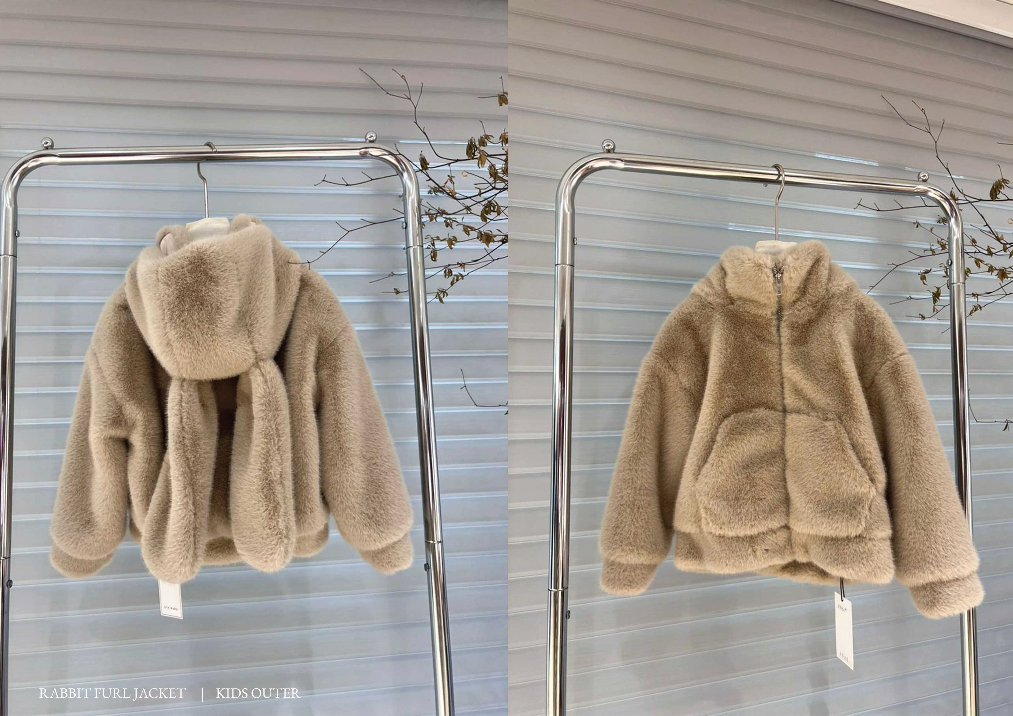Rabbit Furl Jacket 100cm (3-4 th) : Bust 39cm – Length 43cm 110cm (4-5 th) : Bust 41cm – Length 44cm 120cm (5-6 th) : Bust 43cm – Length 47cm 130cm (6-7 th) : Bust 44cm – Length 50cm 140cm (7-8 th) : Bust 46cm – Length 53cm 150cm (8-9 th) : Bust 50cm – Length 55cm