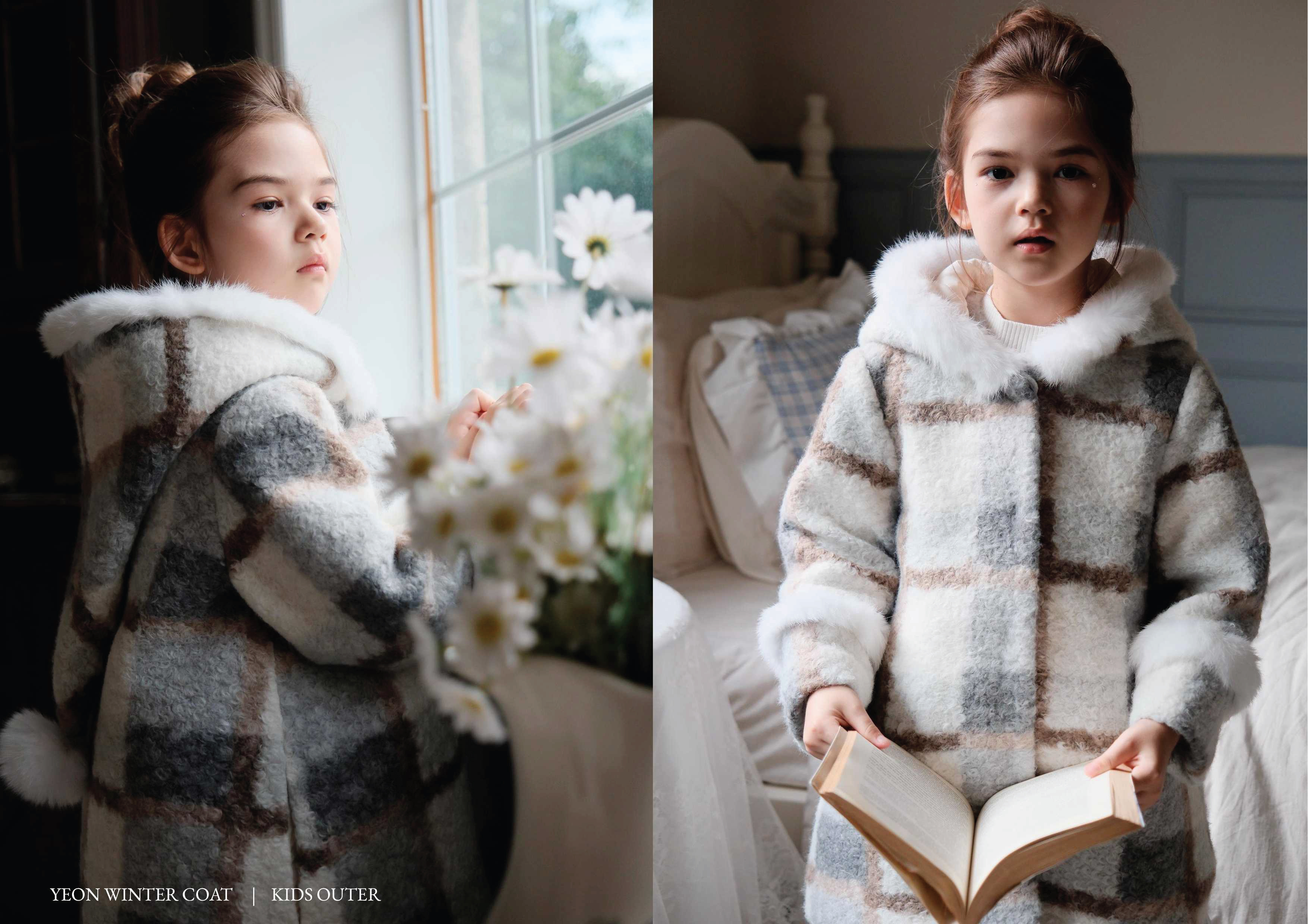 Yeon Winter Coat Colors : Pink, Blue Size : 100cm (3-4 th) : Bust 42cm – Length 57cm 110cm (4-5 th) : Bust 43cm – Length 59cm 120cm (5-6 th) : Bust 46cm – Length 65cm 130cm (6-7 th) : Bust 47cm – Length 69cm 140cm (7-8 th) : Bust 48cm – Length 74cm 150cm (8-9 th) : Bust 51cm – Length 79cm